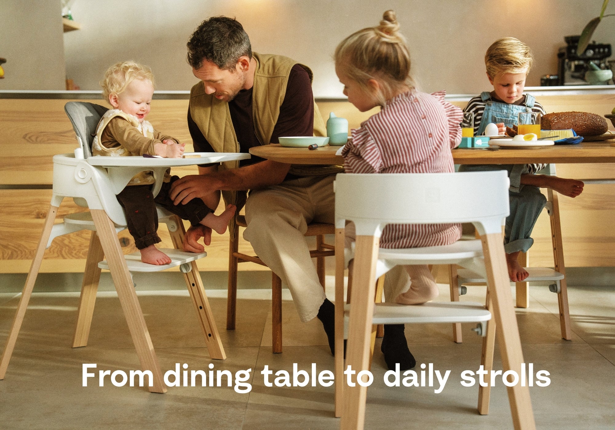 طقم للأطفال 6+ - عربة ستوكي يويو³و كرسي تريب تراب باللون الأبيض