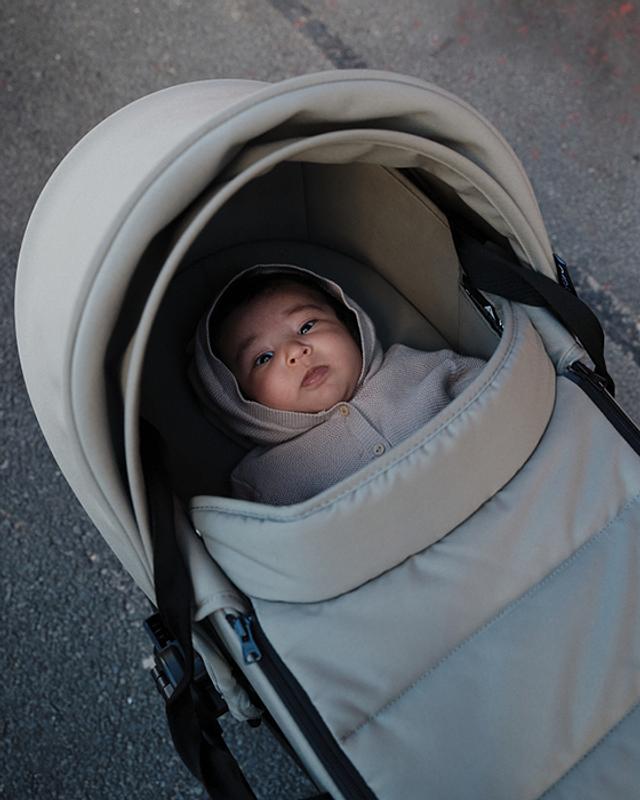 - It's a real cocoon for your child. It is positioned on top of the stroller frame, so you can be close to your baby. Your baby is comfortably snuggled on a breathable double mattress. The bassinet shell and canopy have been designed to let air flow freely.