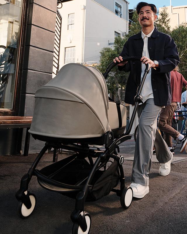 The YOYO² frame can be folded and carried over your shoulder while you carry the bassinet when walking back home.