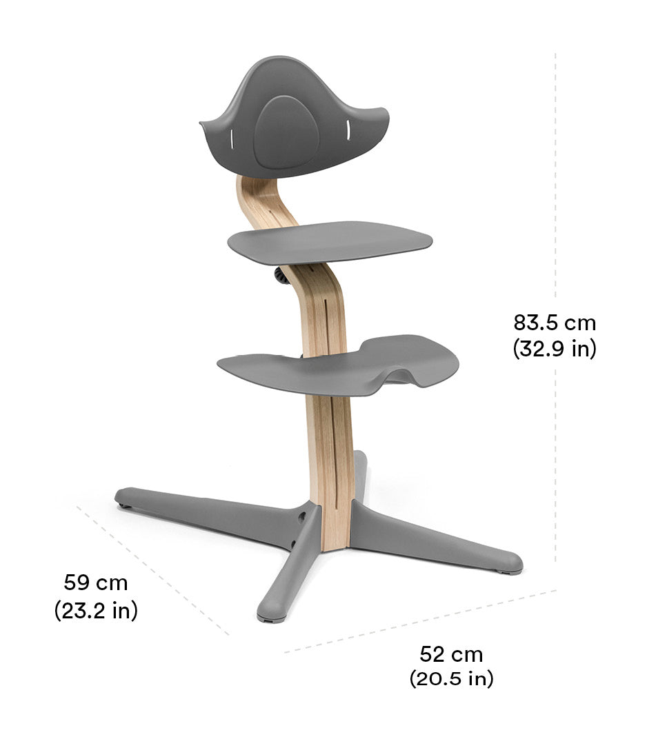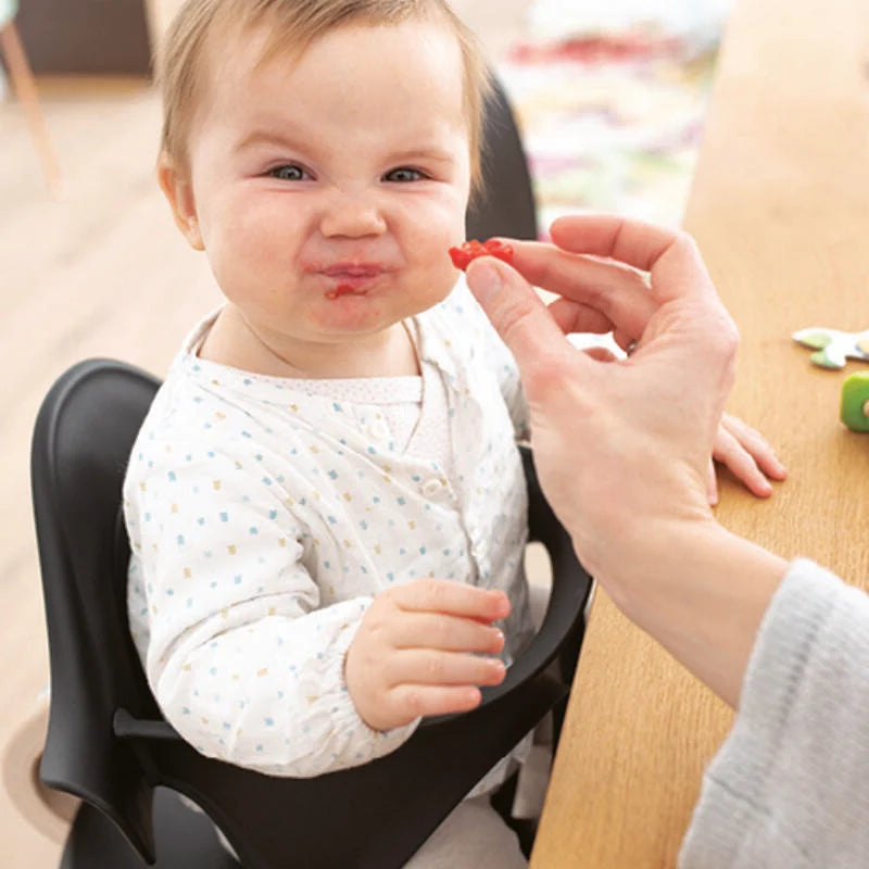 - The rounded, organic contours create a comfortable highchair with unrestricted movement – which is excellent for toddler's development as they explore, taste and interact at the family table.